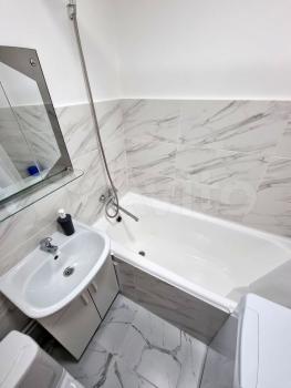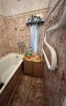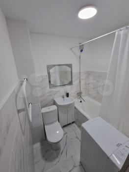 Кухня компактная, но функциональная, оснащена всем необходимым для приготовления пищи. Санузел совмещённый, оформлен в светлых тонах.