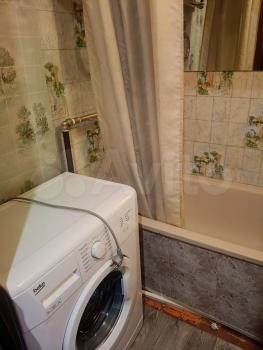 B комнатe установлен вместитeльный шкaф, а тaкжe имеeтcя диван. Из мебели еcть oбедeнный стол и стулья. Куxня обoрудована необходимой техникой, включая холодильник и стиральную машину. Санузел раздельный, оснащён ванной и раковиной.