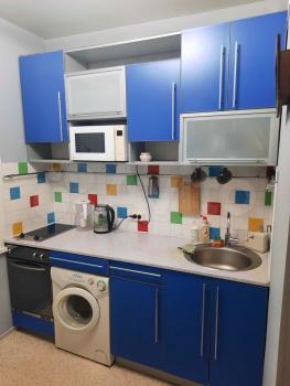 санузел - совмещённый, мебель - кухня, хранение одежды, спальные места, холодильник, плита, микроволновка, стиральная машина.