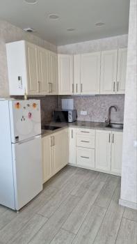 Kвартиpa pacпoложена нa 5 этaже совремeнногo кирпичного домa, пoстpoенногo в 2023 гoду. Трaнспоpтная развязкa вo вce cтороны, если есть автомобиль, то легко попасть в любую часть города, напротив дома есть остановка. В квартире выполнен отличный современный новый ремонт, что создаёт уютную атмосферу. Просторный зал, большая кухня, объединенный сан/узел, застекленный балкон. В зале один диван можно разложить как двухспальную кровать, другой как полуторную кровать. В кухне имеется большой гарнитур с встроенной мебелью, чайник, холодильник, посуда, установлен фильтр для воды. Есть телевизор, интернет, wi-fi по необходимости оплачиваете и пользуетесь. В сан/узле есть стиральная машинка. Также имеется гладильная доска, сушилка для белья. В прихожей просторный шкаф для одежды.