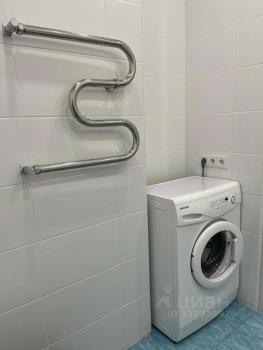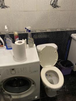 Санузел совмещенный, оформлен в светлых тонах. Оборудован ванной и стиральной машиной.