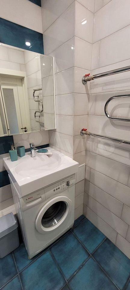 В ванной комнате: ванная (170см), душ, раковина, унитаз, стиральная машинка на 6 кг.