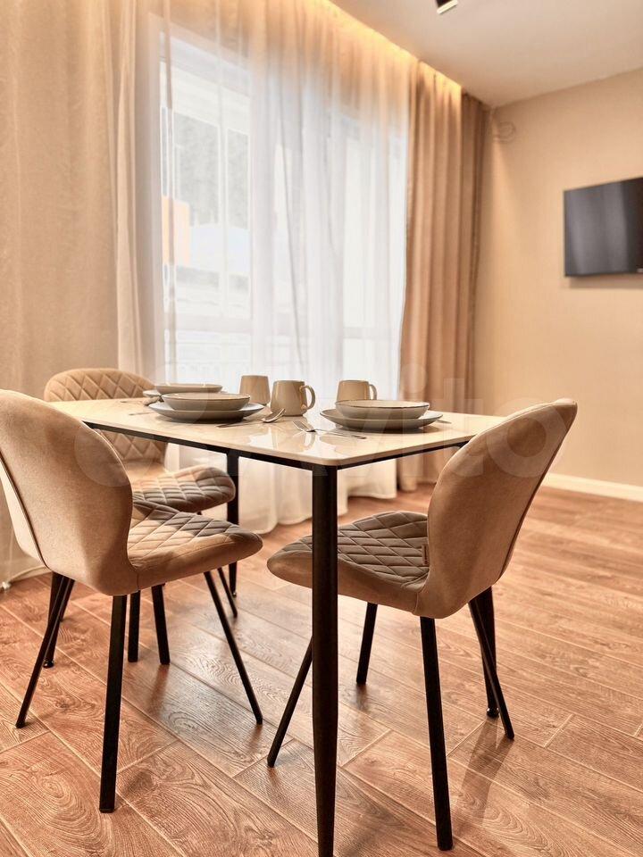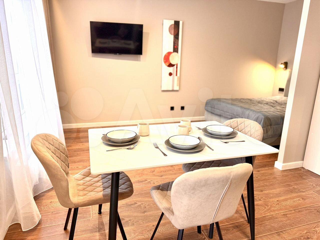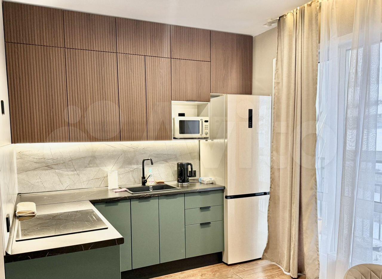 Квартира студия в новостройке, сделан хороший евроремонт. Полностью укомплектована новой мебелью и техникой, большой балкон. Очень хороший и чистый район, всё необходимое в шаговой доступности.