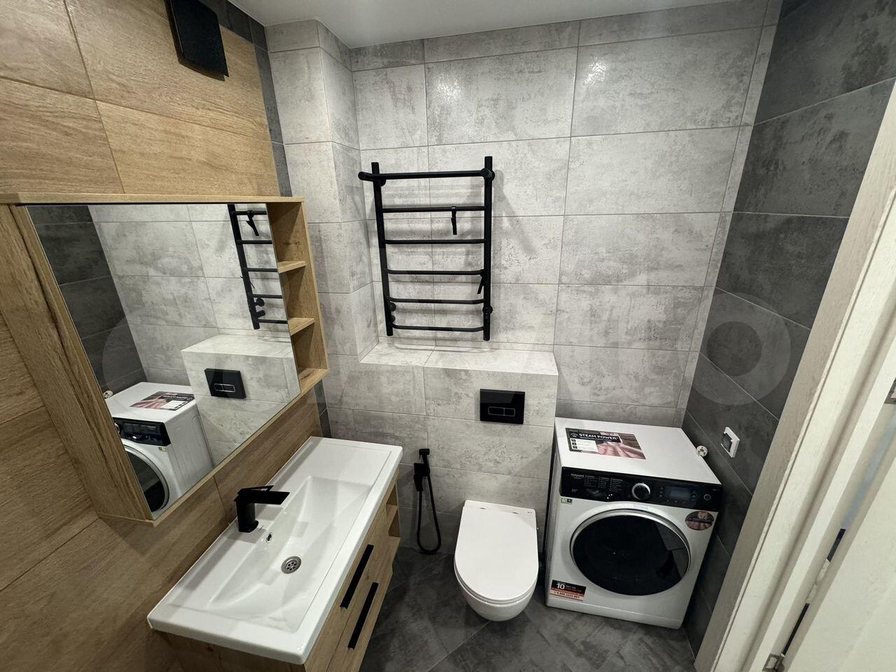 Санузел совмещенный, оформлен в современном стиле с качественной сантехникой. Из кухни есть выход на балкон.