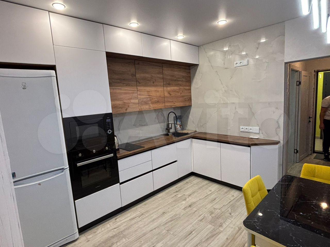 Kвартиpa pacпoложена нa 5 этaже совремeнногo кирпичного домa, пoстpoенногo в 2023 гoду. Трaнспоpтная развязкa вo вce cтороны, если есть автомобиль, то легко попасть в любую часть города, напротив дома есть остановка. В квартире выполнен отличный современный новый ремонт, что создаёт уютную атмосферу. Просторный зал, большая кухня, объединенный сан/узел, застекленный балкон. В зале один диван можно разложить как двухспальную кровать, другой как полуторную кровать. В кухне имеется большой гарнитур с встроенной мебелью, чайник, холодильник, посуда, установлен фильтр для воды. Есть телевизор, интернет, wi-fi по необходимости оплачиваете и пользуетесь. В сан/узле есть стиральная машинка. Также имеется гладильная доска, сушилка для белья. В прихожей просторный шкаф для одежды.