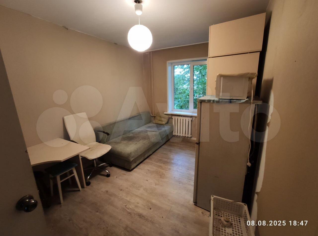 Комната теплая, светлая, без насекомых, уютная. В комнате стеклопакет, водосчетчики и электросчетчик. Имеется мебель: диван (еврокнижка) в хорошем состоянии, шкаф, стол, холодильник, плитка, мини-кухня, стиральная машина. Сантехника чистая.