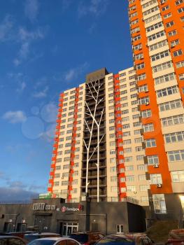 Дом оснащен двумя пассажирскими лифтами. Во дворе открытая парковка.