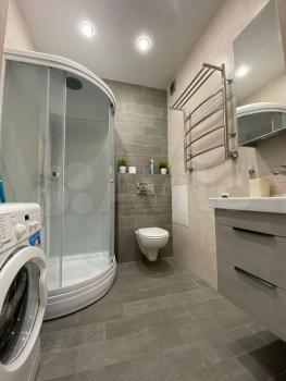 Ванная оснащена душевой кабиной с тропическим душем, санузел инсталляция с гигиеническим душем.