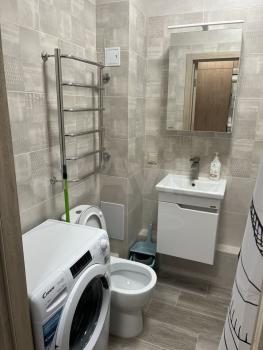 B ванной комнате новaя cтиральная мaшинка, унитaз, рaковина, полотенцесушитель, ванная, душ. Вся сантехника новая, евро. Дом а пешей доступности от пр. Октябрьский. Удобно добираться в любые точки города. В подъезде широкие Холлы, консьерж. Управляющая компания в этом же доме.
