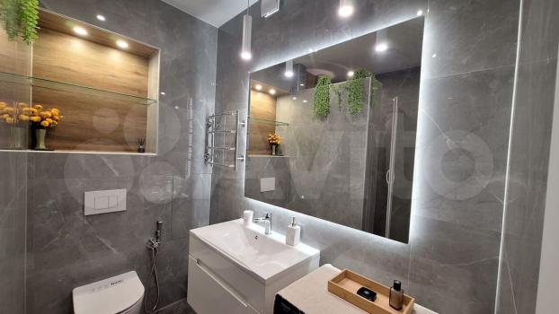 Ремонт выполнен по индивидуальному дизайн- проекту, современный и стильный, система кондиционирования, декоративная штукатурка, теплые полы в туалете и коридоре. Новая кухня и вся бытовая техника ( необходимая посуда) мягкий диван, ТВ подключенный интернет с Wi- Fi. В коридоре и туалете керамогранит, отличная душевая с теплым полом. В отдельной спальне новая кровать и ортопедический матрас, есть стол для рабочего место.