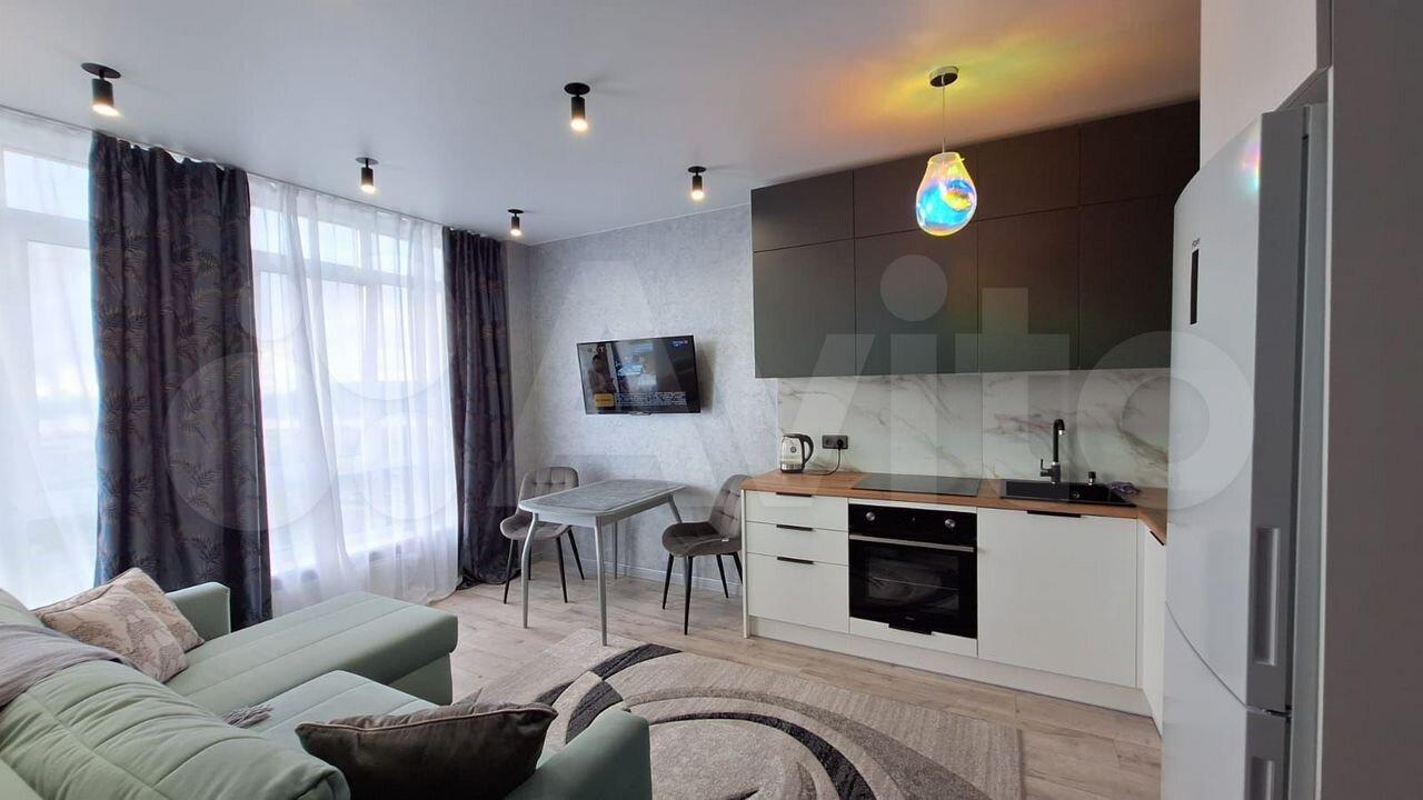 Квартира полностью готова к комфортному проживанию. В наличии всё необходимое: современная мебель на кухне и в комнате, а также техника кондиционер, холодильник, стиральная машина, фен, микроволновка. Санузел совмещённый, оборудован ванной. Также имеется балкон с видом во двор, где можно приятно провести время на свежем воздухе.