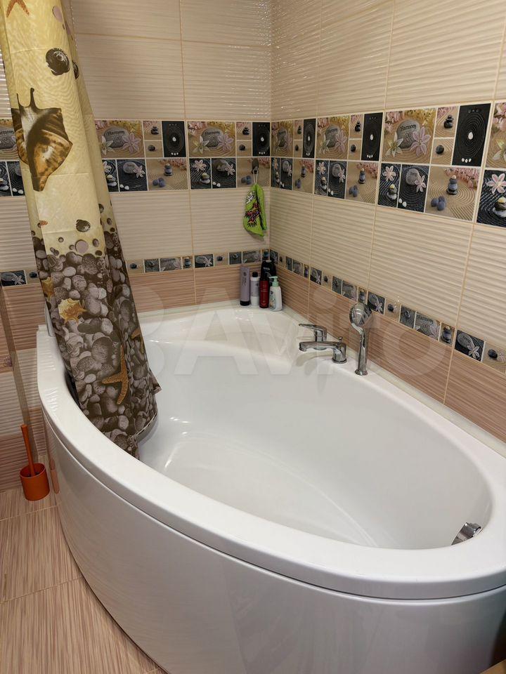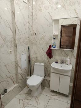 Кухня оснащена необходимой бытовой техникой, имеется посуда, кастрюли, сковордки и т.д.Санузел раздельный, оформлен плиткой под мрамор. В ванной комнате установлена современная сантехника, стиральная машина.
