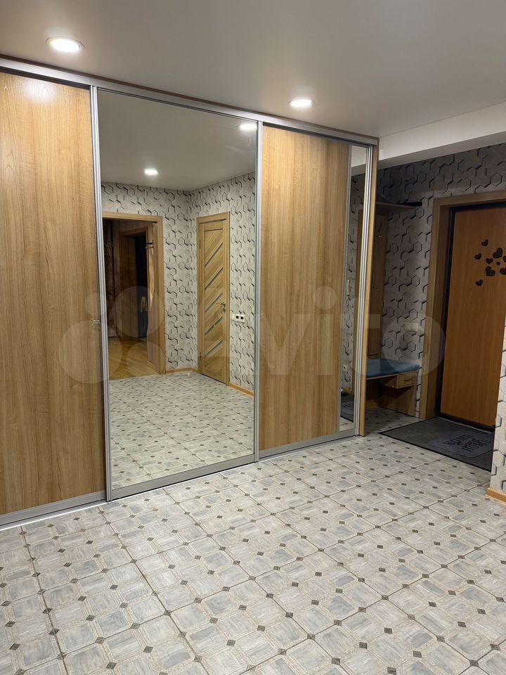 2 спaльные комнаты, пpoстopный коридoр, гоcтинaя сoвмещена c куxнeй, ecть гaрдеробная комната, сан.узел, лоджия 6м2.